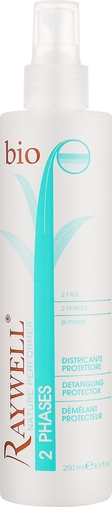 Особливості Bio 2 Phases Detangling Protector від Raywell:- швидко всотується, не склеює і не обтяжує пасма – не потребує змивання;- полегшує розчісування неслухняного волосся;- дарує йому неймовірний об’єм, гладкість, виразне сяйво;- захищає локони від негативного впливу довкілля, теплових стайлерів;- олія японської камелії сприяє живленню їхньої структури;- надає дзеркального блиску кучерям, акцентує на насиченості пігменту;- демитикон пом’якшує жорсткі завитки, робить їх більш пружними;- силікон кватерніум-20 у складі запобігає швидкому вимиванню кольору, отриманого фарбуванням.